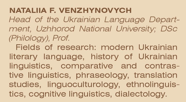 Сфера наукових зацікавлень професорки Наталії Федорівни Венжинович зосереджена на дослідженнях сучасної української літературної мови, історії українського мовознавства, порівняльного й зіставного мовознавства, фразеології, перекладознавства, лінгвокультурології, етнолінгвістики, когнітивної лінгвістики й діалектології.