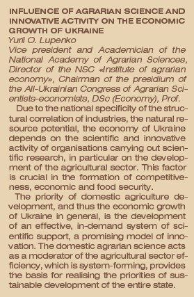 Суспільно-економічна і господарська система, перебуваючи в стані кардинальних системних трансформацій, потребує проривних інновацій, тому науково-інноваційний напрям постає пріоритетом. Без наукового супроводу, ефективної дифузії інновацій, конкурентоспроможність, здатність економіки, галузі, набувати нових якостей стає проблематичною. За пріоритет розвитку вітчизняного сільського господарства, а значить економічного зростання України загалом слід визначити розбудову ефективної, затребуваної системи наукового забезпечення, перспективної моделі інноваційної діяльності. Значний внесок у таку глобальну результативність належить аграрній науці, яка демонструє високу інституційну спроможність реалізовувати на практиці розробки світового масштабу, йде «в ногу» з адептами креативного світосприйняття, імплементуючи пріоритетні наукові парадигми.