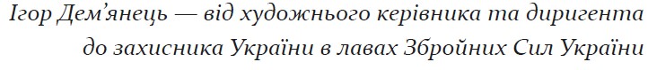 Постійною підтримкою й натхненням Ігоря Дем’янця є сім’я — дружина Юлія, син Юрій та донечка Ксенія, щасливе мирне майбутнє котрих він виборює в лавах ЗСУ. Із 24 лютого 2022 р. для виконання бойових завдань направлений в 406 артилерійський дивізіон окремої артилерійської бригади в м. Миколаїв. У травні переведений на військову службу старшим матросом в Центр військово-музичного мистецтва Військово-Морських Сил Збройних Сил України.