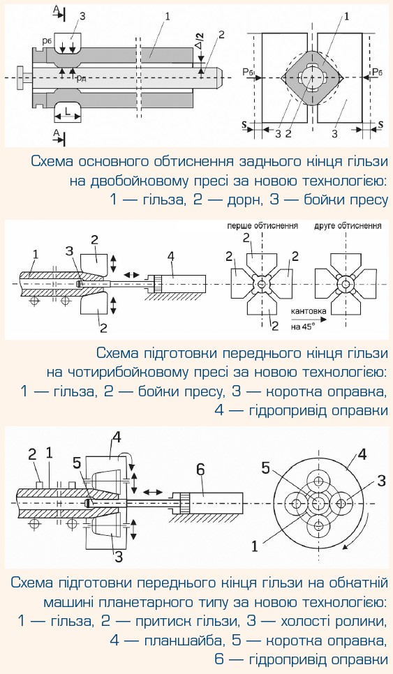 Новим напрямом для вдосконалення процесу пілігримової прокатки стала підготовка задніх кінців гільз з боку внутрішнього діаметру на косовалковому прошивному стані за рахунок переміщення оправки в процесі прошивки, а також на гідравлічних двох і чотирибойкових пресах зі спеціальним калібруванням бойків. Підготовка передніх і задніх кінців на кожній гільзі дозволить підвищити точність труб за рахунок зниження різностінності, збільшити продуктивність пілігримових станів за рахунок підвищення кутової швидкості валків, знизити втрати металу в затравку і пільгерголовку.