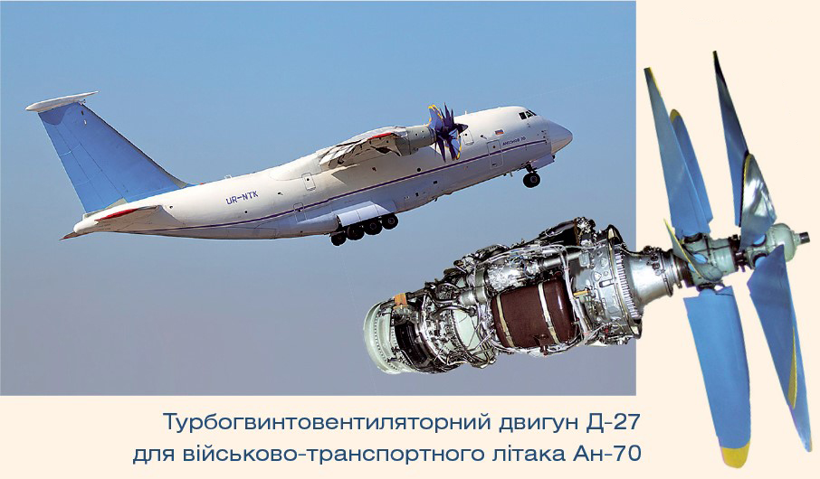 У 2014 р. успішно завершені державні випробування військово-транспортного літака короткого зльоту та посадки Ан-70 із першим у світі маршовим турбогвинтовентиляторним двигуном (ТГВД) Д-27. У 2015 р. його прийняли на озброєння Збройних сил України.