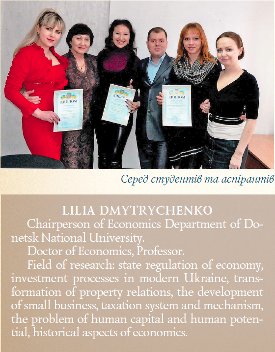 Лілія Іванівна Дмитриченко – фахівець у галузі політичної економії, історії економічних учень і державного регулювання економіки. Народилася 22 травня 1948 р. у м. Донецьк в сім’ї гірничих інженерів. З відзнакою у 1970 р. закінчила Донецький державний університет, де залишилася працювати, пройшовши всі сходинки наукового й професійного росту – від асистента до завідувача кафедри.