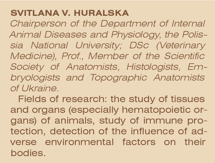 Життєве кредо професорки Гуральської Світлани Василівни — слова Фридриха Шиллера «Людина віддзеркалюється у своїх вчинках». Свою наукову діяльність вчена присвятила дослідженню та лікуванню тварин. Ідучи в ногу з часом, вона також допомагає боротися з коронавірусом, який вражає не лише людей. Зокрема результати дослідження патоморфології інфекційного бронхіту курей, спричиненого коронавірусом, застосовуються на птахогосподарствах.