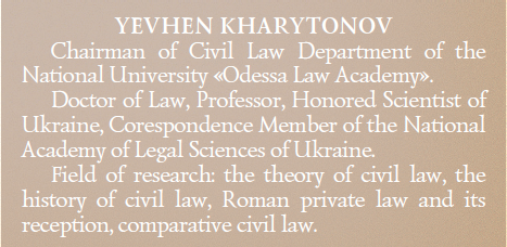 Монографія Є.О. Харитонова «История частного (гражданского) права Европы. Книга І» отримала ІІ премію у конкурсі на краще юридичне видання 1998–1999 рр., а також грант Фонду «Відродження» для підготовки її видання українською мовою. Серед інших нагород за видання – «Краще юридичне видання 2000–2001 рр.» на IV Всеукраїнському конкурсі на краще юридичне видання та перемога у номінації «Навчальні посібники (практикуми, курси лекцій, хрестоматії та ін.)» на VI Всеукраїнському конкурсі на краще юридичне видання. У 2003 році присвоєно почесне звання «Заслужений діяч науки і техніки України».