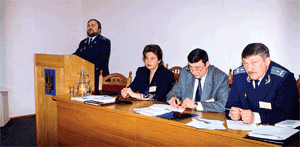 Володимир Григорович читає лекції. В президії — керівники структурних підрозділів Генеральної прокуратури України