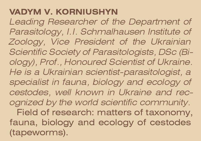 Загалом його учні захистили шість кандидатських та одну докторську дисертацію. Найуспішнішим серед учнів Вадима Васильовича був його син Олексій, визнаний у світі малаколог, фахівець із фауни, систематики та філогенії сфериїд, дрібних прісноводних двостолкових молюсків. Його науковий доробок — понад 120 публікацій, зокрема ґрунтовні статті в провідних міжнародних та українських фахових журналах, більше ніж десять узагальнювальних монографічних видань, а також навчально-методичних посібників. Серед них — праці «Двустворчатые моллюски надсемейства Pisidioidea Палеарктики» (1996) та розділи в таких виданнях, як «Biodiversitat und Naturausstattung im Himalaya» (в співавторстві, Erfurt, 2003) та «Balkan Biodiversity Pattern and Process in the European. Hotspot» (у співавторстві, Dordrecht, 2004). В.В. Корнюшин зробив вагомий внесок у систематику цестод, описав кілька десятків нових видів, десятки нових родів, родин та вищих таксонів, докорінно переглянув систему п’яти родин. Про світове визнання серед колег-цестодологів свідчить участь у таких міжнародних програмах, як «Fauna Europea Database (Cestoda)» та «Globale Cestoda Database», запрошення на симпозіуми із систематики цестод та участь у підготовці визначника світової фауни цестод «Keys to the Cestode Parasites of Vertebrates» (1994, Велика Британія). Науковий доробок В.В. Корнюшина становить майже 300 публікацій. Це статті у вітчизняних і закордонних фахових журналах та індивідуальні й колективні монографічні зведення, визначники та підручники. Головні наукові публікації вченого — «Давенеоидеи, Биутериноидеи, Парутериноидеи. Фауна Украины» (том 3, 1989) та розділи у виданнях: «Определитель паразитов позвоночных Черного и Азовcкого морей. Паразитические безпозвоночные рыб, рыбоядных птиц и морских млекопитающих» (у співавторстві, 1975), «Фауна, таксономия и екология на хелминти по птици» (у співавторстві, 1984), «Helminths of Fish-Eating Birds of the Palearctic Region. 2. Cestoda and Acanthocephala» (в співавторстві, 1985), «Колониальные гидрофильные птицы Юга Украины. Ржанкообразные» (в співавторстві, 1988), «Keys to the Cestode Parasites of Vertebrates» (у співавторстві, 1994), «Академік Олександр Прокопович Маркевич. Життя і діяльність» (у співавторстві, 1999), «Бранта: Сб. тр. Азово-Черноморской орнитологической станции» (в співавторстві, 2004), передмова до українського видання в книзі «Загальна паразитологія» (2006), «Большой баклан (Phalacrocorax carbo) в Украине: численность, территориальное распределение и их изменения» (в співавторстві, 2016), а також підручники: «Паразитологія: Конспект лекцій», 2011, «Загальна паразитологія» (в співавторстві, 2017). Широка загальна й фахова ерудиція, ґрунтовна обізнаність із проблемами ветеринарної і медичної паразитології стали основою високого авторитету В.В. Корнюшина серед паразитологів-практиків. Він зробив вагомий внесок в організацію роботи Українського наукового товариства паразитологів, яке об’єднує представників паразитологічної науки й практики, багато років був ученим секретарем, із 1999 р. — віцепрезидент цього товариства. Визнанням заслуг Вадима Васильовича Корнюшина перед українською наукою та його вагомого внеску в розвиток паразитології стало відзначення науковою премією НАН України імені І.І. Шмальгаузена (1995), медаллю АН СРСР «З нагоди 100-річчя з дня народження академіка К.І. Скрябіна» (1978), стипендією Дж. Сороса (1993–1994), відзнакою НАН України «За підготовку наукової зміни» (2010), а також державними нагородами: меда