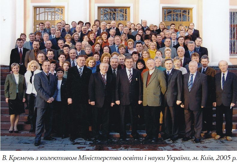Зміни в освітній галузі, очолюваній Міністром освіти і науки Василем Кременем у 2000–2005 рр., були концептуально цілісними і логічно продовжили теоретичні наукові напрацювання. Саме з його ініціативи й за безпосереднього керування в країні відбувся активний процес переходу від авторитарної педагогіки до педагогіки толерантності, освітня система України наблизилася до освітніх систем розвинутих європейських країн, втілюється в життя інноваційна державна політика в галузях освіти і науки. Загальноосвітня школа перейшла до нового змісту та дванадцятирічного навчання. Запроваджено вивчення іноземної мови з другого класу. Українська мова як державна вивчається всіма учнями загальноосвітніх шкіл. Кількість учнів, що навчається українською, зросла з 62 % до 75 %. Причому без будь-якого тиску і супротиву. Навчальні досягнення оцінюються позитивною дванадцятибальною шкалою. Обґрунтовано перехід старшої школи до профільності. Переважно здійснено комп’ютеризацію загальноосвітніх закладів. Розпочато виконання програми «Шкільний автобус». Ухвалено програму з виготовлення та постачання до навчальних закладів обладнання нового покоління для вивчення природничо-математичних та технологічних дисциплін. Розпочато експеримент із упровадження зовнішнього незалежного оцінювання школярів.