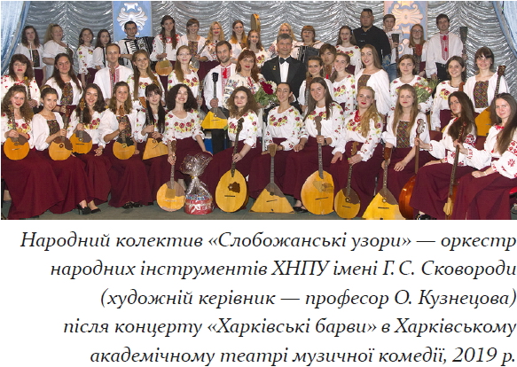 О. А. Кузнецова — засновник і художній керівник багатьох музичних колективів — лауреатів конкурсів, і колективів, що мають звання народних: естрадного ансамблю «Маестро» (1987–2014) і понад 30 років оркестру народних інструментів «Слобожанські узори» ХНПУ імені Г. С. Сковороди. Масштабний мистецький проєкт, який нещодавно реалізувала Ольга Алексіївна за участі цього яскравого колективу — концертно-просвітницьке шоу «Харківські барви» в Харківському академічному театрі музичної комедії (2019), до якого долучилися заслужений діяч мистецтв України І. Коваль, заслужені артисти України О. Слєпцова та Н. Коваль.
