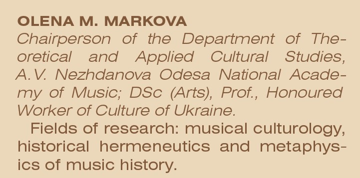 Музикознавиця, педагогиня й музично-громадська діячка Олена Миколаївна Маркова створила наукову школу культурологічно спрямованого виконавського музикознавства, розробила концепцію історичної герменевтики й метафізики музичної історії та сформувала напрям музичної культурології.