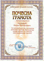 З ім’ям досвідченого господаря і професіонала Петра Михайловича Муцького пов’язано створення у столиці сучасних торговельних комплексів, вдосконалення та поліпшення роботи ринків з продажу продовольчих і непродовольчих товарів.