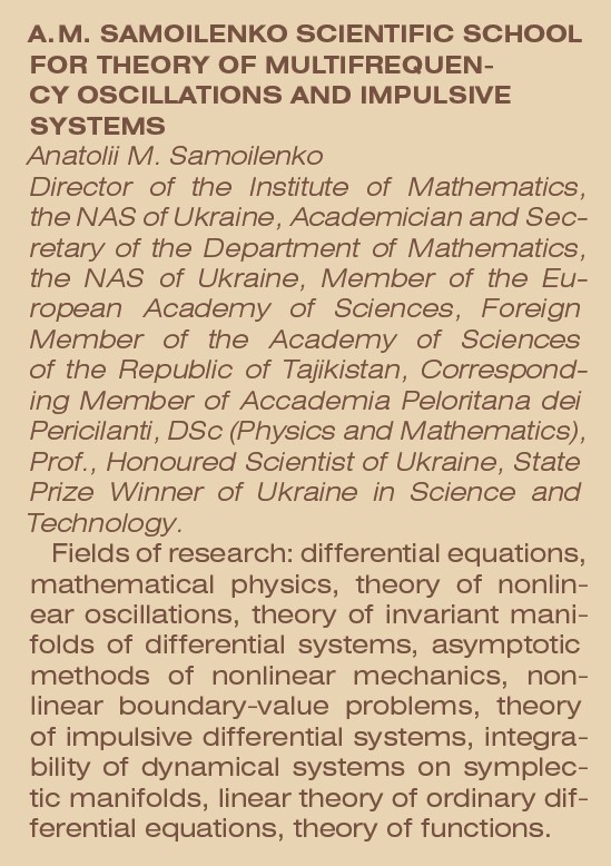 Відомий математик і лідер наукової школи Анатолій Михайлович Самойленко зробив фундаментальний внесок у математику та її викладання. Завдяки своєму талантові й досвіду він здобув заслужений авторитет і повагу наукової спільноти у світі.