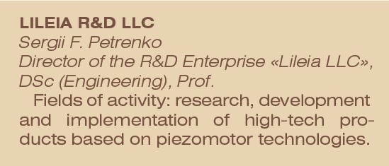 на основі п’єзомоторних технологій. Його фахівці створили й запатентували унікальні за характеристиками п’єзоелектричні двигуни резонансного типу на стоячих акустичних хвилях із кільцевим резонатором та радіальною формою коливань, які широко застосовують у різних галузях промисловості як в Україні, так і за кордоном.