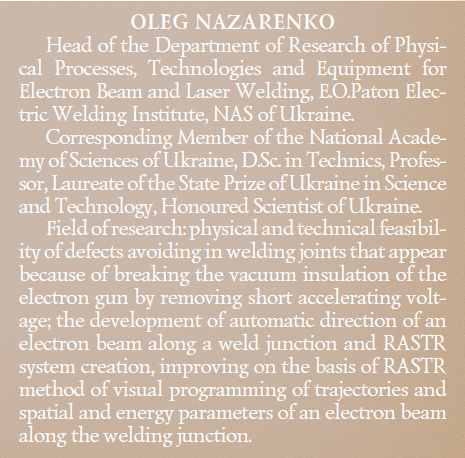 Завідувач відділу дослідження фізичних процесів техніки та обладнання для електронно-променевого та лазерного зварювання Інституту електрозварювання ІМЕНІ Є.О. Патона НАН України