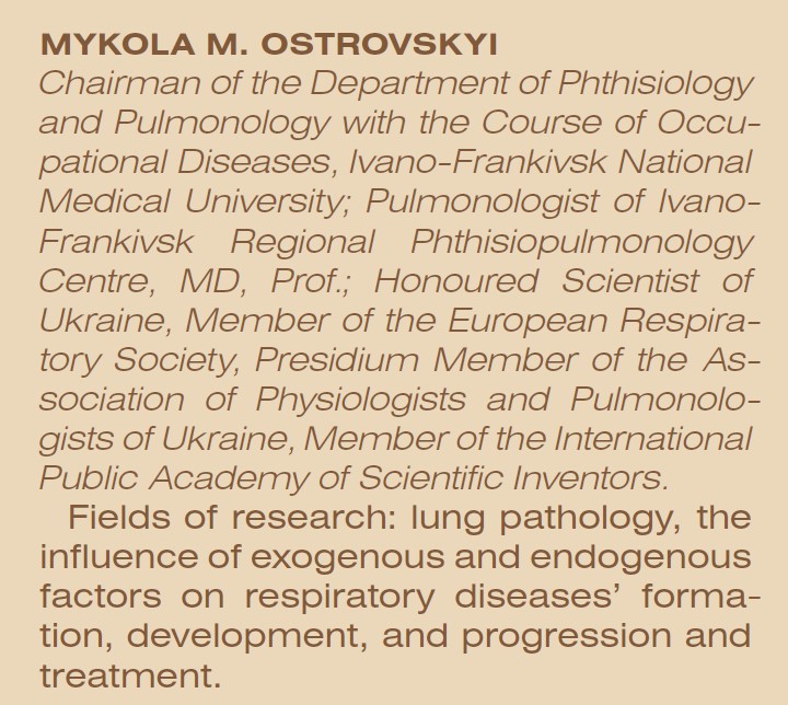 Співавтор наукового відкриття в галузі «Медицина», провідний український пульмонолог Микола Миколайович Островський зробив вагомий внесок у розвиток сфери практичної охорони здоров’я України. Численні методичні рекомендації, інформаційні листи й раціоналізаторські пропозиції досвідченого лікаря допомогли фахівцям у лікуванні патологій легень. У тісній співпраці з національним лідером у галузі патології органів дихання ДУ «Національний інститут фтизіатрії і пульмонології ім. Ф. Г. Яновського НАМН України» учений провів пріоритетні наукові дослідження стосовно впливу екзогенних та ендогенних факторів на формування, перебіг і прогресування захворювань органів дихання та їхнього лікування.