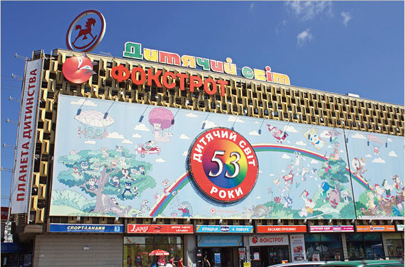 Життєпис одного з найбільших в Україні універмагів «Дитячий світ» має чимало цікавих сторінок. Відкрився 1 грудня 1959 р. на Хрещатику, займаючи два поверхи житлового будинку площею 875 кв. м поряд із Бессарабським ринком. З липня 1987 р. універмаг гостинно запросив відвідувачів в нову чотириповерхову будівлю по вул. Малишка, 3 з торговельною площею 7200 кв. м, а нині вона становить 19780 кв. м. В 2010 р. перейменований на публічне акціонерне товариство «Універмаг «Дитячий світ».