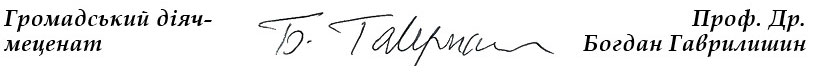 Вступне слово громадського діяча-мецената Проф. Др. Богдана Гаврилишина