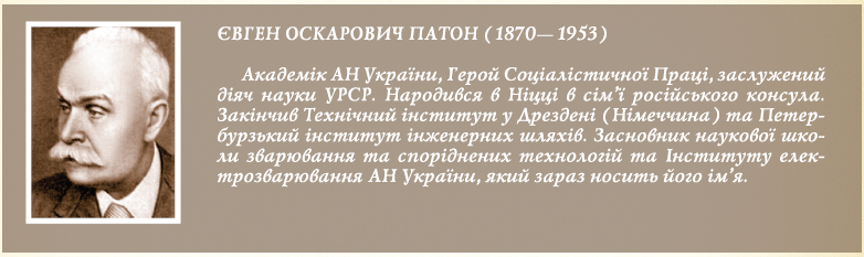 У 1929 р. професор Київського політехнічного інституту, академік ВУАН Є.О. Патон створив Електрозварювальну лабораторію і почав досліджувати міцність зварних конструкцій, формувати наукові основи зварювального виробництва. У 1933 р. в складі ВУАН в Києві було створено Інститут електрозварювання, яким до кінця життя керував Є.О. Патон. (У 1945 р. постановою Уряду інституту надано ім’я засновника). Він розробив оптимальну структуру інституту, до складу якого ввійшли науково-дослідні підрозділи, конструкторські бюро, групи впровадження, експериментально-виробничі майстерні, що дозволяє у найкоротший термін довести наукову ідею до втілення в реальні технології й устаткування та впровадити цю роботу у виробництво. Характерними для стилю роботи Є.О. Патона були вибір і рішення ключових питань, практичне застосування результатів наукових досліджень. У початковий період було створено раціональні конструкції зварних вагонів, котлів, суден, мостів. Замість клепаних, створено автоматичне дугове зварювання під флюсом, яке почало впроваджуватися в промисловість. У 1935 р. Є.О. Патон організував в КПІ зварювальний факультет.