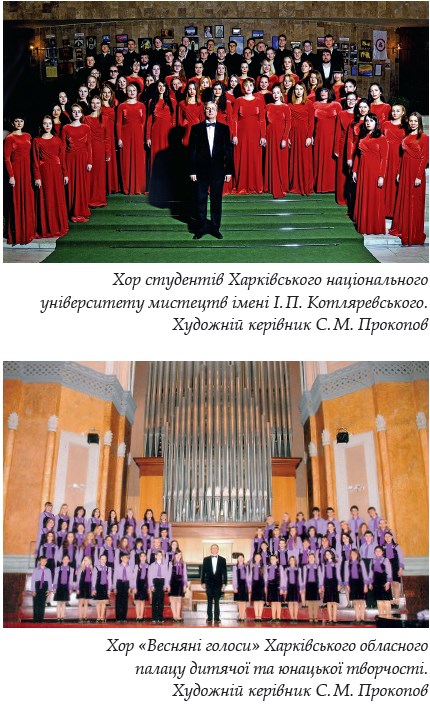 Із 2011 р. С. М. Прокопов — художній керівник і головний диригент студентського хору Харківського національного університету мистецтв імені І. П. Котляревського. У репертуарі колективу з’явилися такі масштабні композиції як ораторії «Ілля» Ф. Мендельсона, «Рай та Пері» Р. Шумана, «Te Deum» Ф. Генделя, кантата № 140 Й. Баха, хорові концерти А. Веделя «Помолихся лицу Твоему всем сердцем», М. Березовського «Всі язиці восплещите руками», «Да воскреснет Бог». Виконання цих творів вперше в Харкові в рамках щорічного Міжнародного музичного фестивалю «Харківські асамблеї» стало помітною подією в музичному житті міста. У 2018 р. на базі кафедри хорового диригування ХНУМ імені І. П. Котляревського за ініціативою С.?М. Прокопова був проведений Перший відкритий конкурс хорових диригентів у рамках конкурсу «Харківські асамблеї». Сергій Миколайович — голова журі Всеукраїнського фестивалю вокально-хорового мистецтва пам’яті Раїси Кириченко «Пісенні крила Чураївни» (2016, 2018, Полтава), конкурсу дитячих хорових колективів «Золотий Орфей» (Кіровоград, 2007), І Всеукраїнського конкурсу диригентсько-хорової майстерності «Viva la voce» (Луганськ, 2011), регіонального конкурсу імені О. Петрусенко (Балаклія, 2009, 2011), Всеукраїнського фестивалю хорових колективів «Співуча феєрія» (2011, 2013) та багатьох конкурсів дитячих хорових колективів міста Харкова та області. Професор С. М. Прокопов — член журі Всеукраїнського конкурсу хорових диригентів (Київ, 2008, 2011), голова державної екзаменаційної комісії НМАУ ім. П. І. Чайковського (2016, 2018). З 2008 р. Сергій Миколайович є головою асоціації «Хорове товариство ім. М. Леонтовича» Харківського обласного відділення Національної всеукраїнської музичної спілки. Багаторічна діяльність С. М. Прокопова в науково-освітній і мистецькій сферах високо відзначена. Він — лауреат муніципальної премії імені І. І. Слатіна, премії «Народне визнання», відмінник народної освіти України, нагороджений почесними грамотами Харківської облдержадміністрації та Харківської облради, Міністерства освіти та науки України, почесною грамотою Міністерства культури України, відзнакою Міністерства культури України «За досягнення в розвитку культури й мистецтв», почесною відзнакою НМАУ ім. П. І. Чайковського «Орден за видатні досягнення в музичному мистецтві». Досягнення та життєвий шлях Сергія Прокопова висвітлені на сторінках таких видань, як довідник «Хорове виконавство України» (автор-упорядник М. І. Бурбан, Дрогобич. Київ, 2004), «Биография и библиография выдающихся музыкантов. Творческий портрет» (Н. В. Червінська, відповідальний редактор І. С. Драч. Харків, 2007), «Vivat «Весняні голоси»!» (А. Мірошникова, С. Письменна // Музика, 2001, № 1).