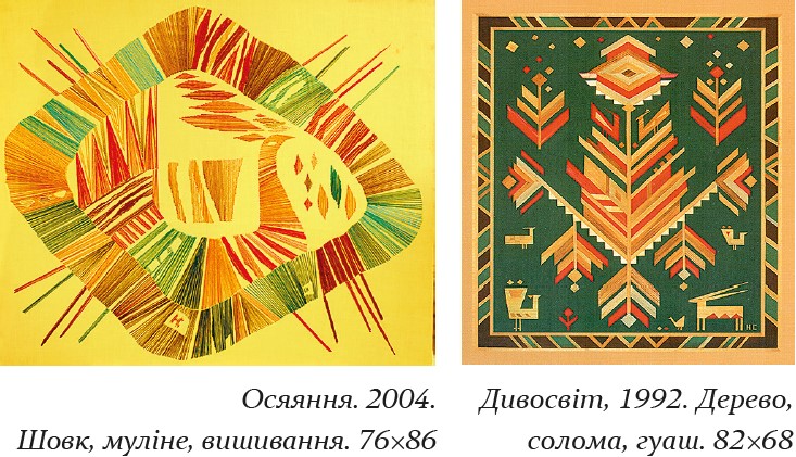 У декоративному мистецтві (килими, гобелени, мозаїки соломою та вибійки) Ніна Саєнко орієнтувалася не лише на художню спадщину батька, а й розвинула її і піднесла на новий рівень у новаторському самовираженні, сприйнятті традицій культури як основи національної духовності: «Прагну у своїх творах розповісти про неповторний український край, показати красу природи і людей, нашу славну й героїчну історію, втілити свої почуття в образи, що з’являються в уяві». Твори Ніни Саєнко здобули світове визнання: виставлялися на міжнародних виставках в Австралії, Китаї, Канаді, США, Великій Британії, Бельгії, Німеччині, Фінляндії, Франції, Польщі.
