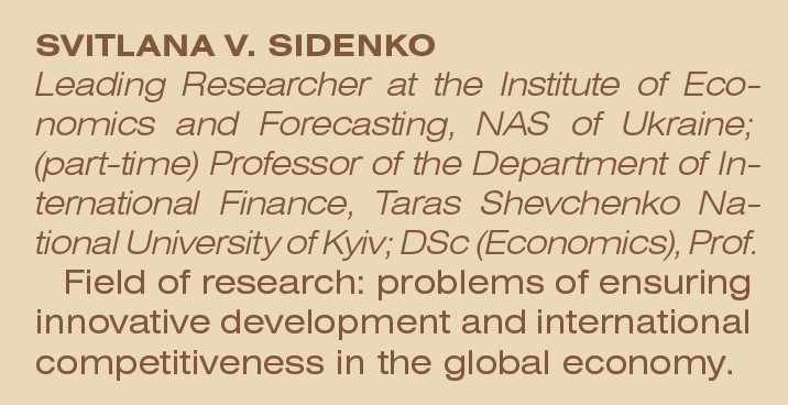 Основній темі своїх наукових досліджень — проблемам забезпечення інноваційного розвитку й міжнародної конкурентоспроможності в умовах глобальної економіки — професорка Світлана Володимирівна Сіденко присвятила понад 180 праць. Це зокрема 2 одноосібні монографії, 1 за редакцією та 26 розділів колективних монографій і підручників, опубліковані не лише в Україні, а й поза її межами — у Великій Британії (Кембридж), Греції, Польщі, Латвії, Німеччині і Словаччині.