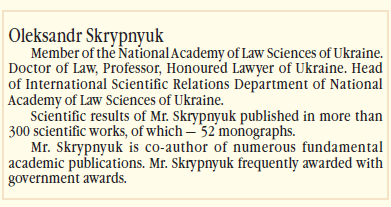 академік Національної академії правових наук України, доктор юридичних наук, професор, Заслужений юрист України, керівник управління по зв’язках з органами державної влади та міжнародними організаціями