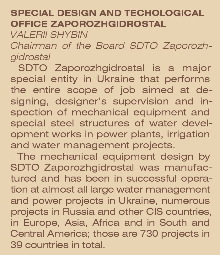 Організація має міжнародний сертифікат якості серії ISO 9001 та надійно утримує свою нішу в світовій гідроенергетиці. Завдяки досвіду, знанням, відданості професії і злагодженості роботи фахівців СПКТБ успішно бере участь в тендерах на будівництво гідроелектростанцій з надання інжинірингових послуг для інших країн світу. Саме тому, в будівництві багатьох закордонних промислових і гідротехнічних об’єктів були задіяні конструкторські рішення «Запоріжгідросталь».