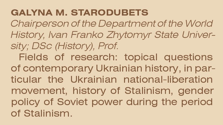 Наукові дослідження професорки Стародубець Галини Миколаївни зосереджені на історії України періоду сталінізму. Учена ґрунтовно вивчає проблеми українського національно-визвольного руху 1940-х рр., суспільно-політичних трансформацій у сільському соціумі України в 1920-х — 1940-х рр., діяльності партійно-радянської номенклатури періоду пізнього сталінізму й гендерної політики радянської влади в роки сталінського тоталітаризму.