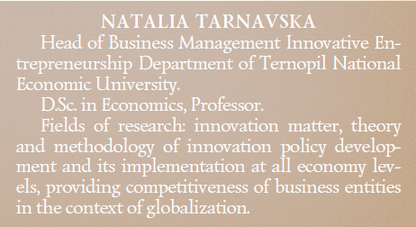 Пріоритетним напрямком роботи Наталії Пет-рівни Тарнавської є проблематика інноватики, теорії і методології формування і реалізації інноваційної політики на всіх рівнях управління економікою, а також забезпечення конкурентоспроможності суб’єктів господарювання в умовах глобалізації.