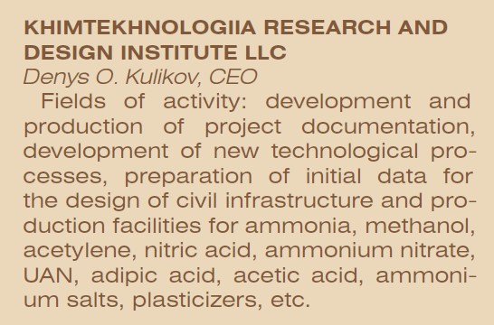 Товариство з обмеженою відповідальністю «Науково-проектний інститут хімічних технологій «Хімтехнологія» (ТОВ «Хімтехнологія») має величезний досвід розробки хімічних технологій і технічних рішень для реалізації проєктів із реконструкції і модернізації наявних або створення нових виробництв в азотній промисловості. Історія компанії розпочалася ще далекого 1950 р. Тоді вона була Лисичанською філією Державного науково-дослідного і проєктного інституту азотної промисловості та продуктів органічного синтезу (ДІАП). Із того часу зазнала низку перетворень й згодом отримала назву, за якою відома нині, — «Хімтехнологія». А в 2008 р. з’явилося Товариство з обмеженою відповідальністю «Науково-проектний інститут хімічних технологій «Хімтехнологія».