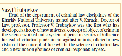 Професор Трубников В. М. вперше в науці кримінального права розробив теорію нового універсального поняття об’єкту злочину, вперше в науці кримінального права розробив систему заходів кримінально-правового впливу замість системи кримінальних покарань відносно неповнолітніх, запропонував нове бачення поняття свободи волі в науці кримінального права і нове поняття підстави кримінальної відповідальності тощо.